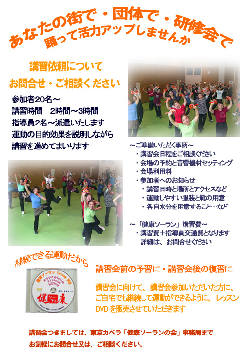 舞台で演舞するだけでなく、「観客の皆さんにも体を動かしていただける健康ソーラン講習を行なうことも可能」であり、参加型プログラムとしても広めていきたい考え。